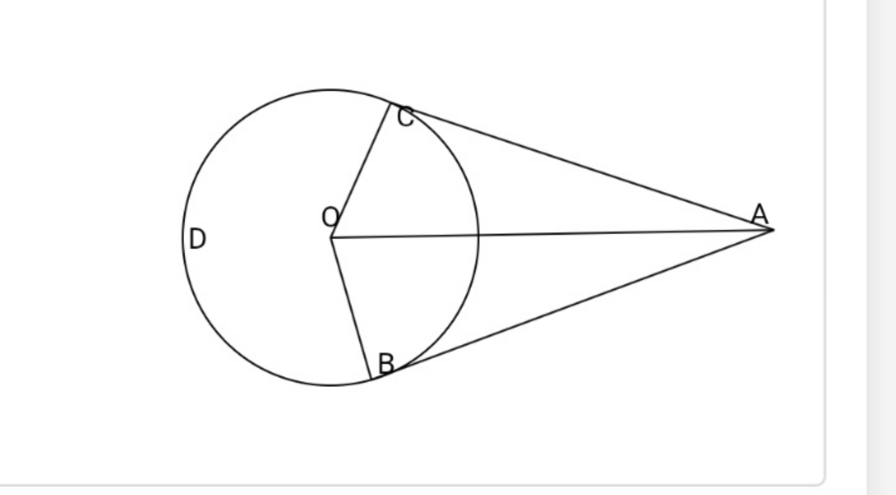 দেওয়া আছে, O কেন্দ্রবিশিষ্ট BCD বৃত্তে A একটি বহি:স্থ